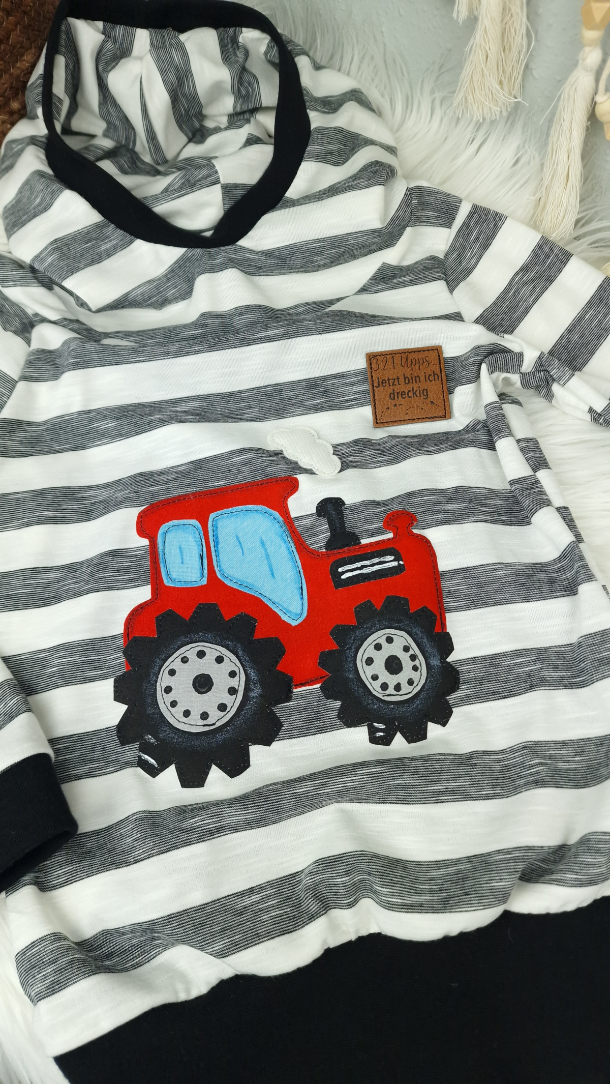 Sweater Hoodie Pullover Traktor Applikation Junge Kinder Gr.116 Einzelstück