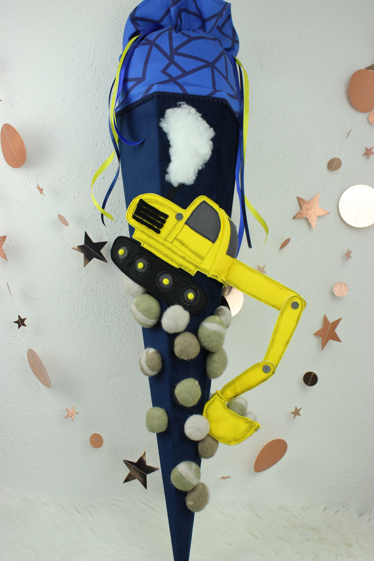 3D-Design-Schultüte Bagger Zuckertüte aus Stoff Unikat Junge