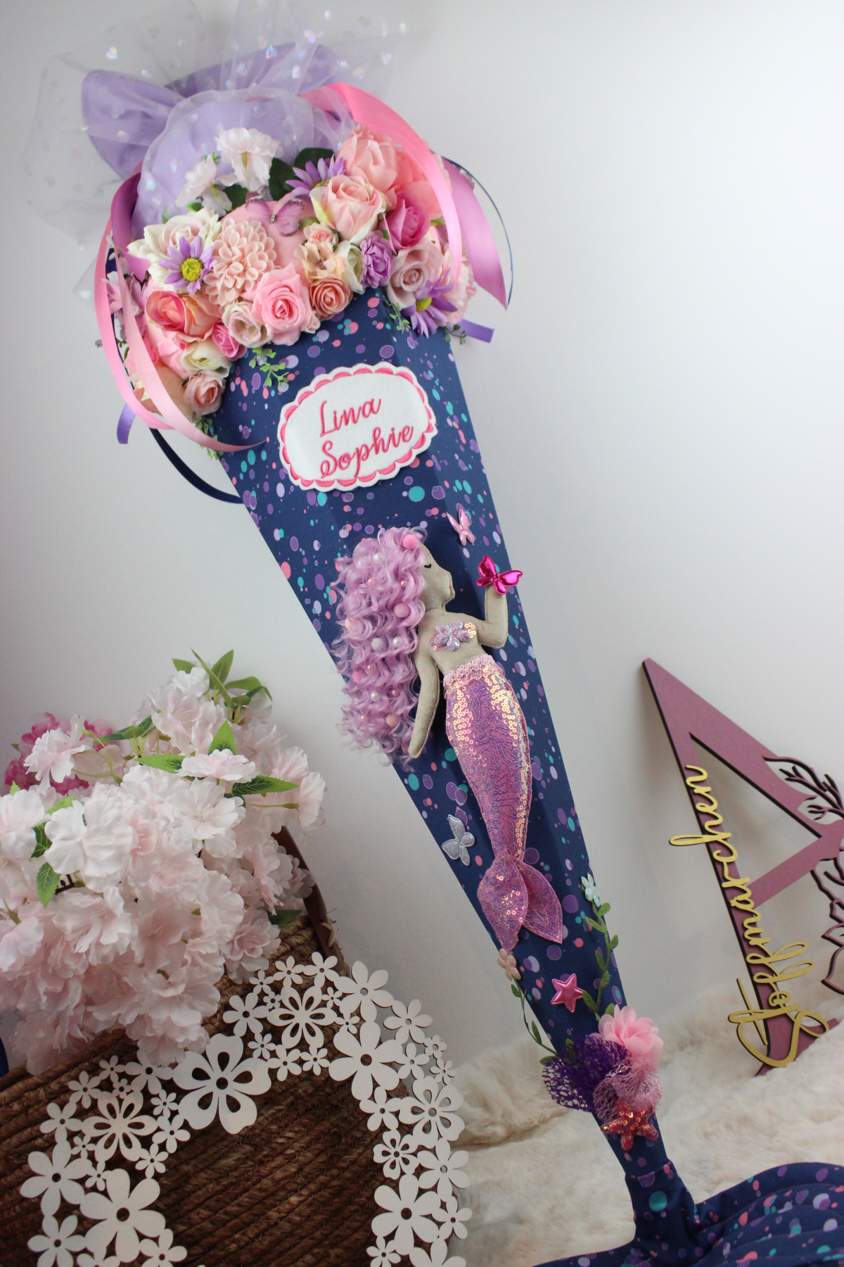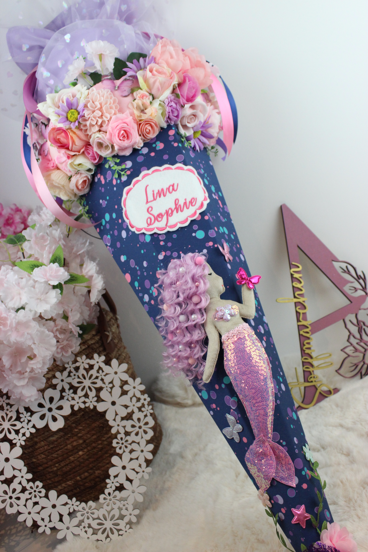 3D-Design Schultüte aus Stoff Zuckertüte Meerjungfrau Meerworld Unikat Einschulung