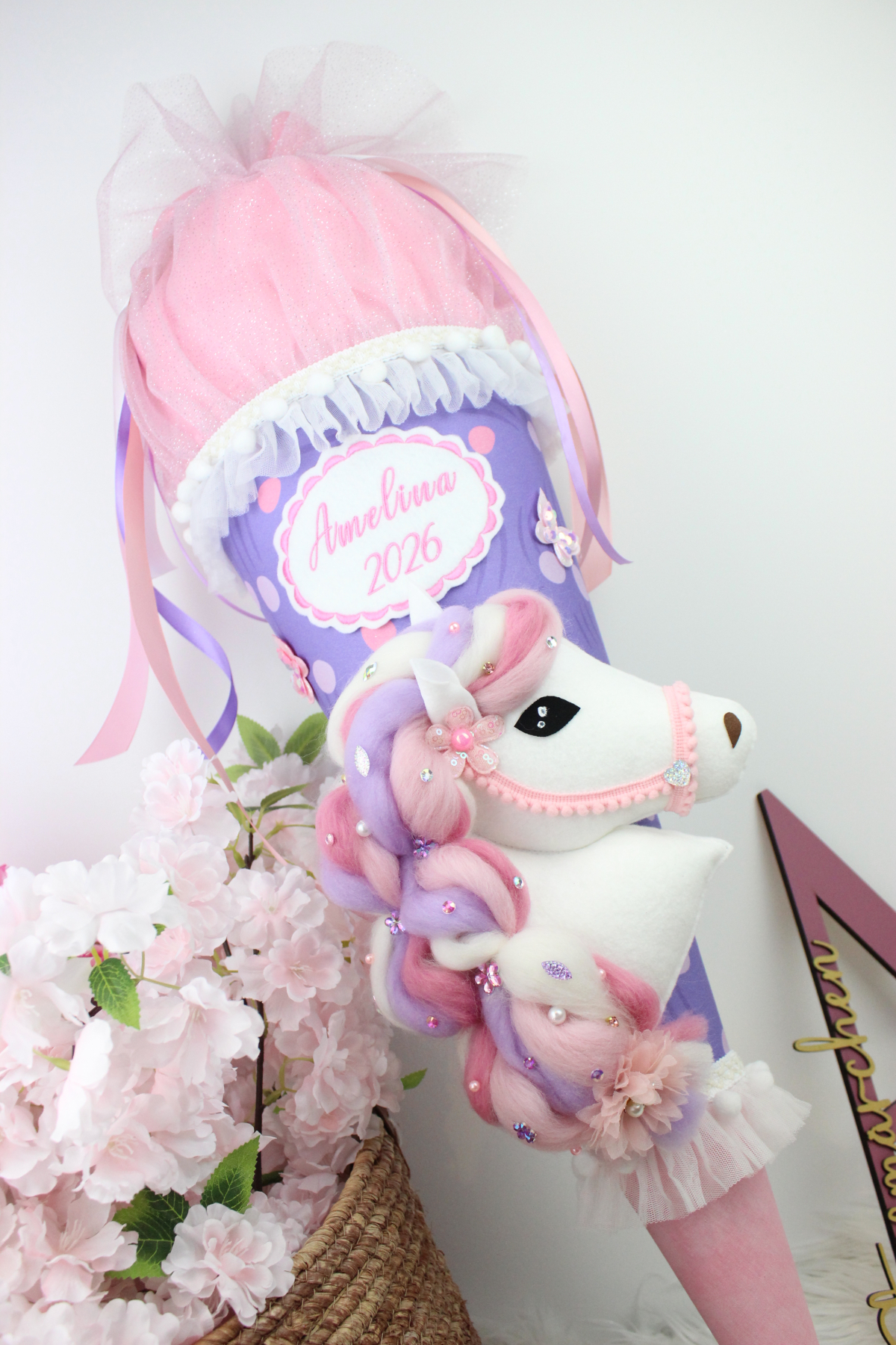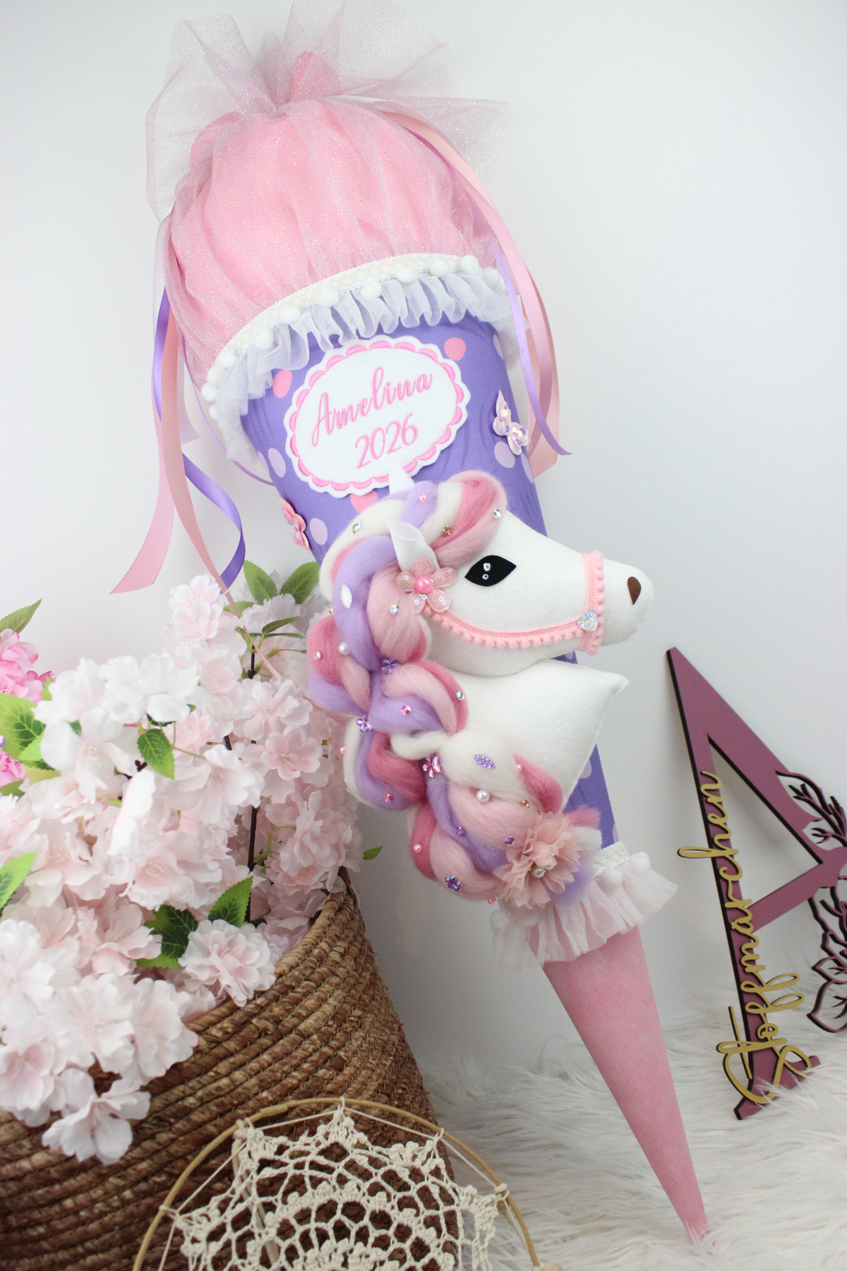 3D-Design Schultüte Zuckertüte Stoff Pferd Einhorn Mädchen Unikat Glitzer