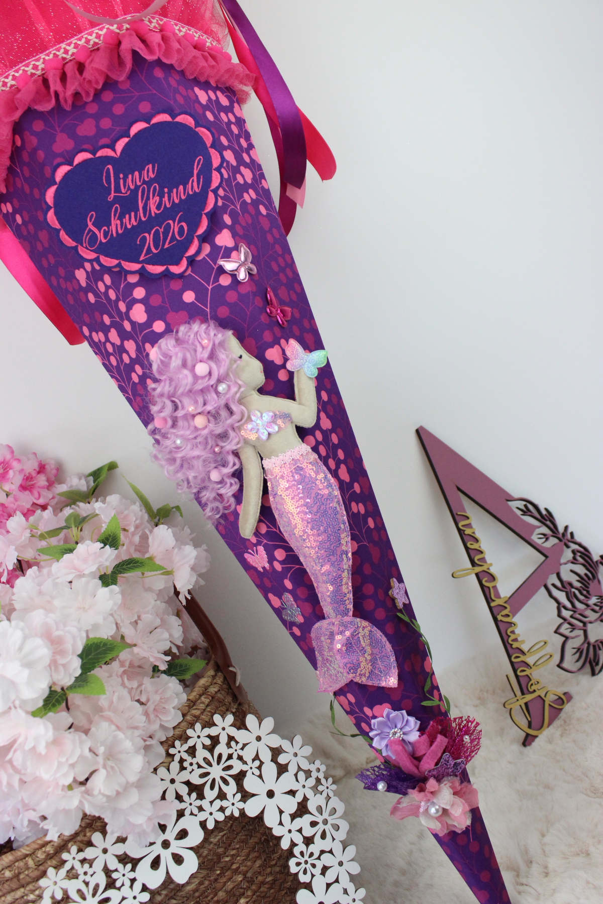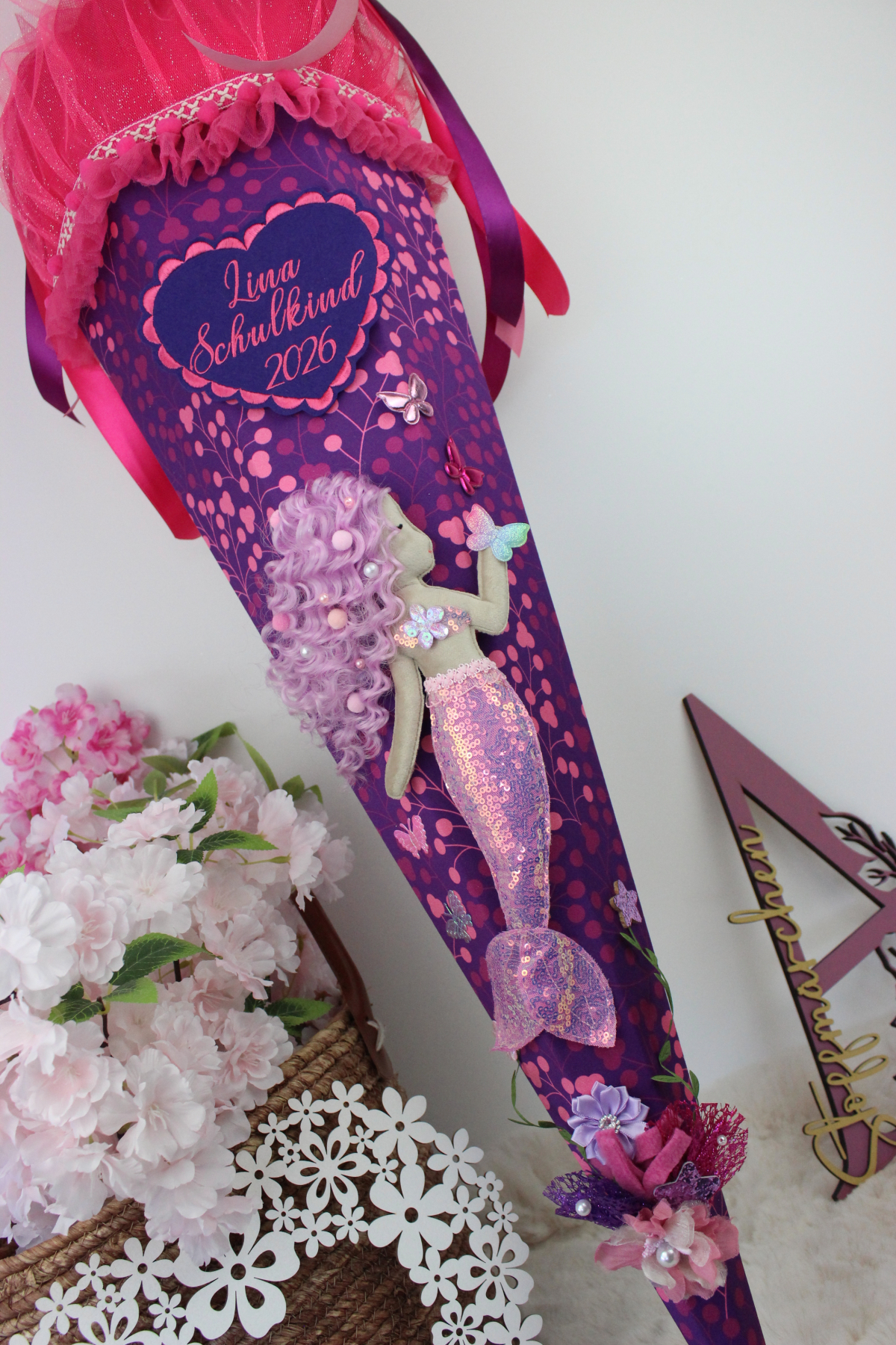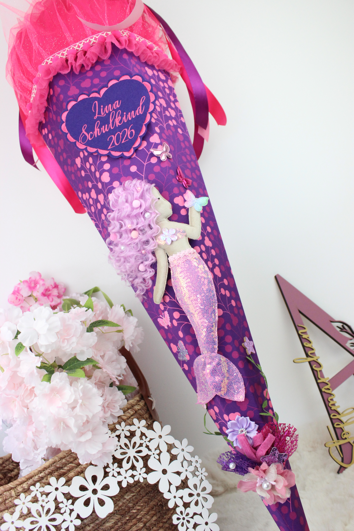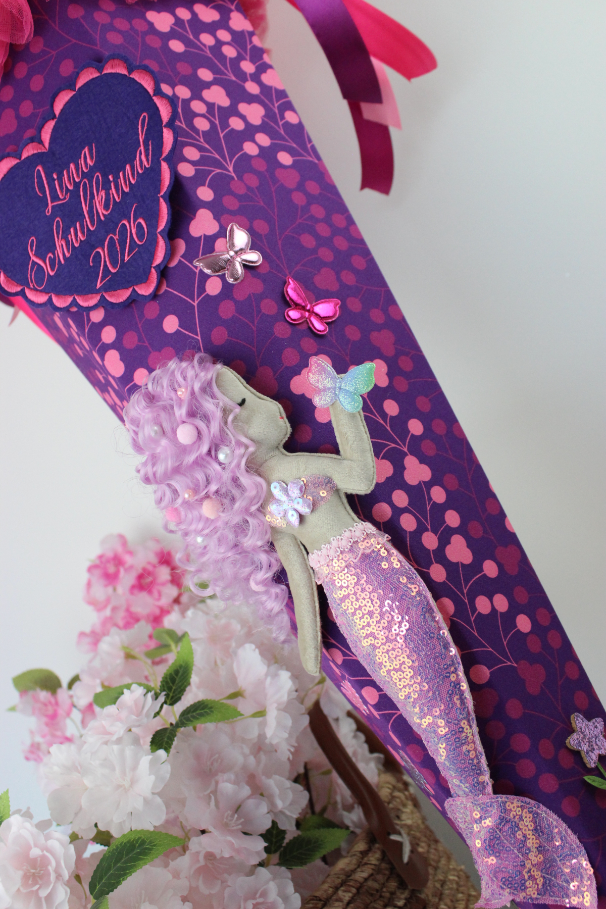 3D-Design Schultüte aus Stoff Meerjungfrau Glitzer Einschulung Mermaid Unikat passend zu Schulranzen Step by Step Butterfly Night