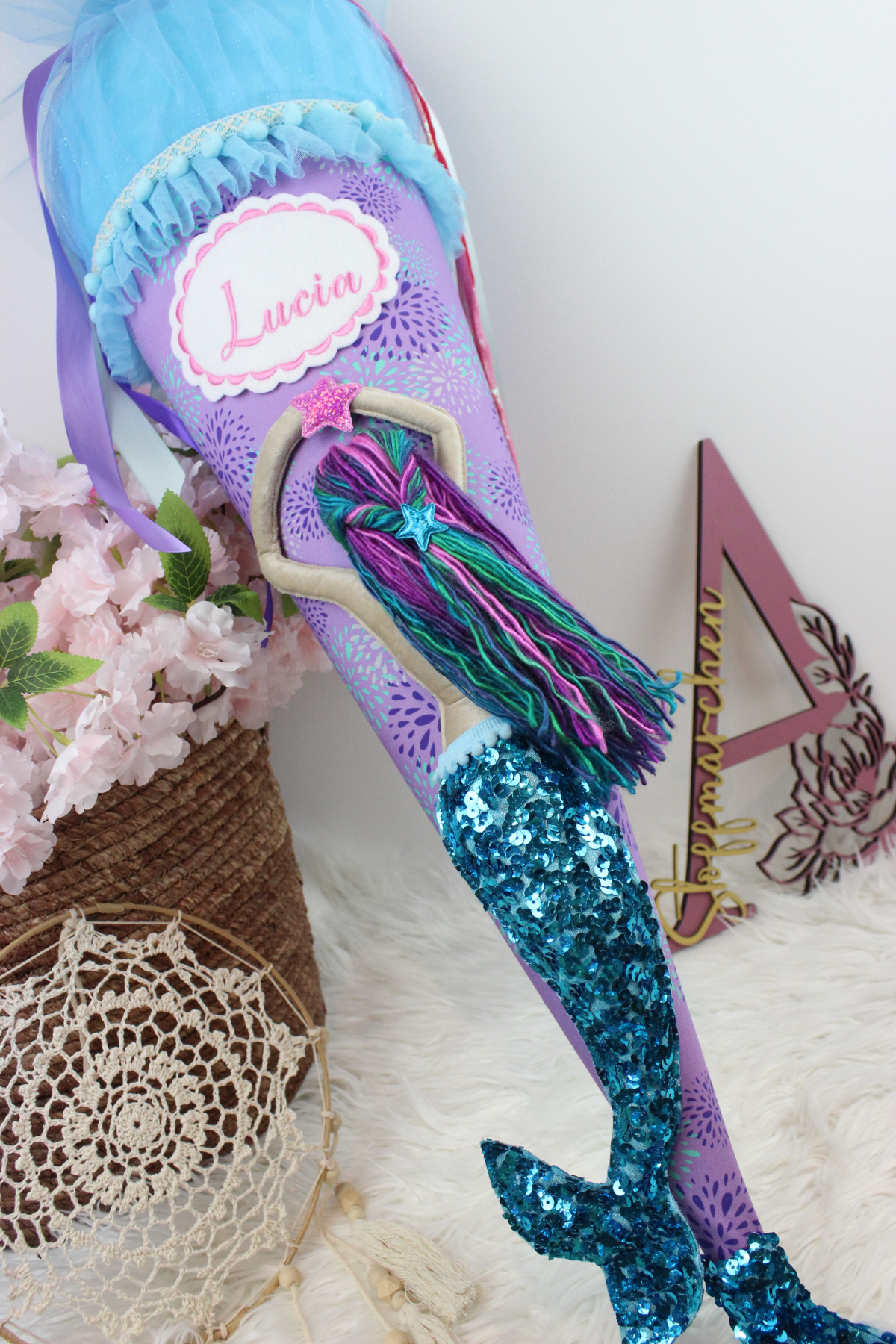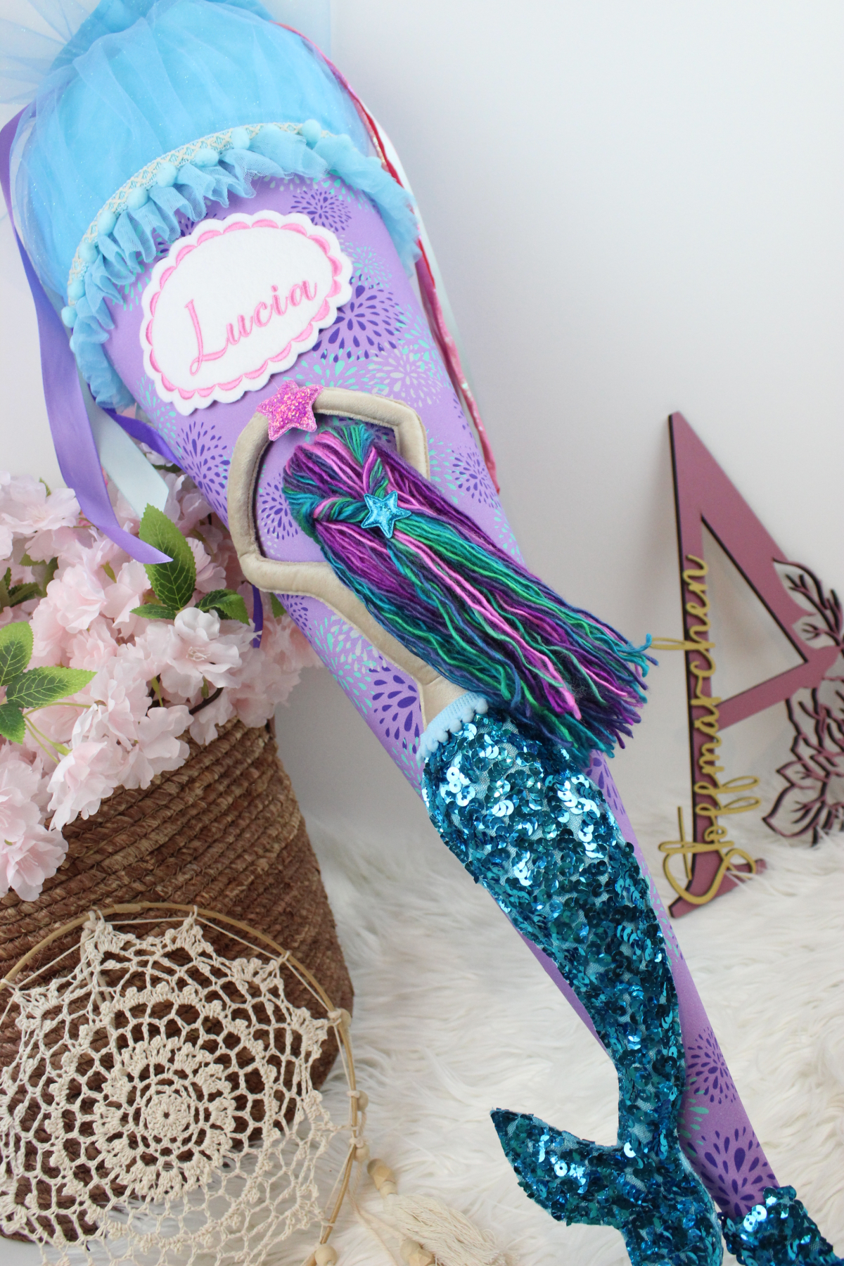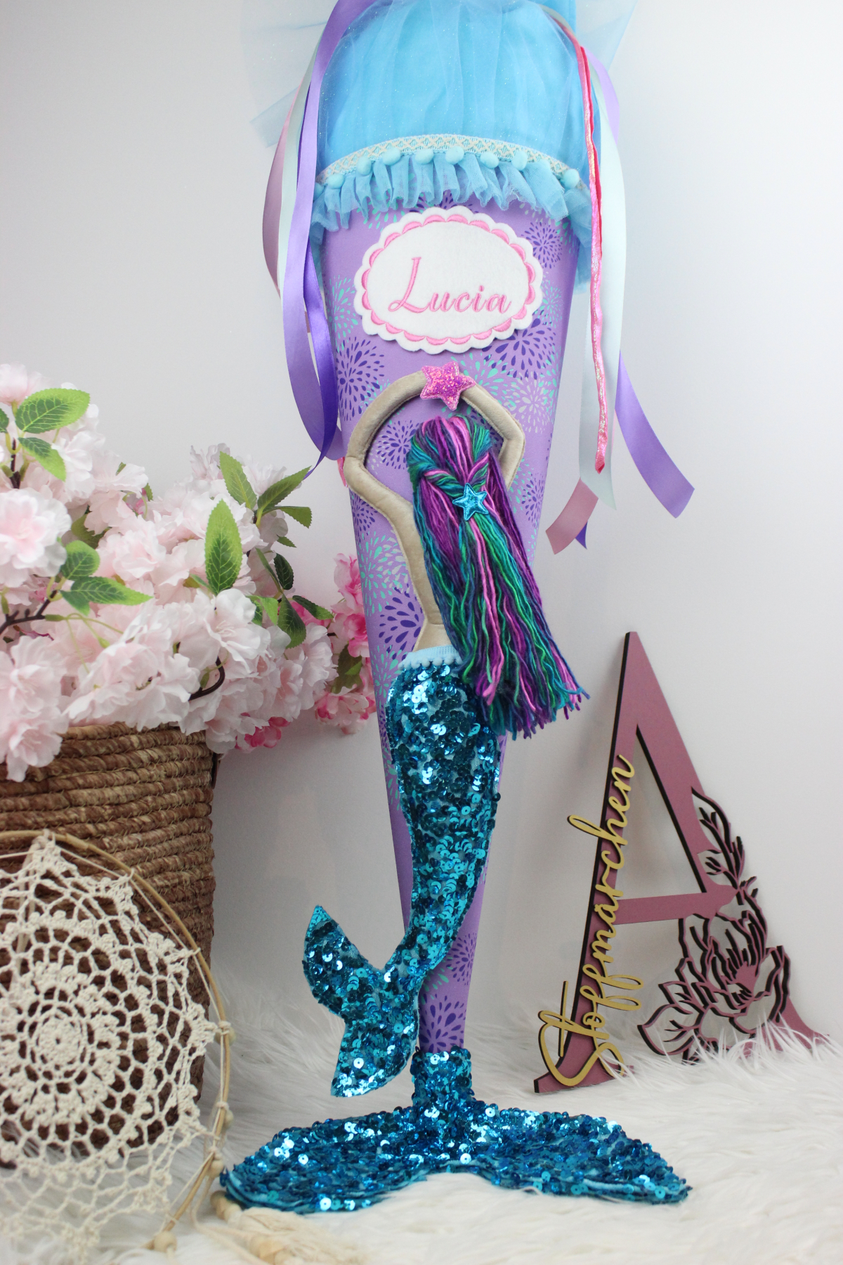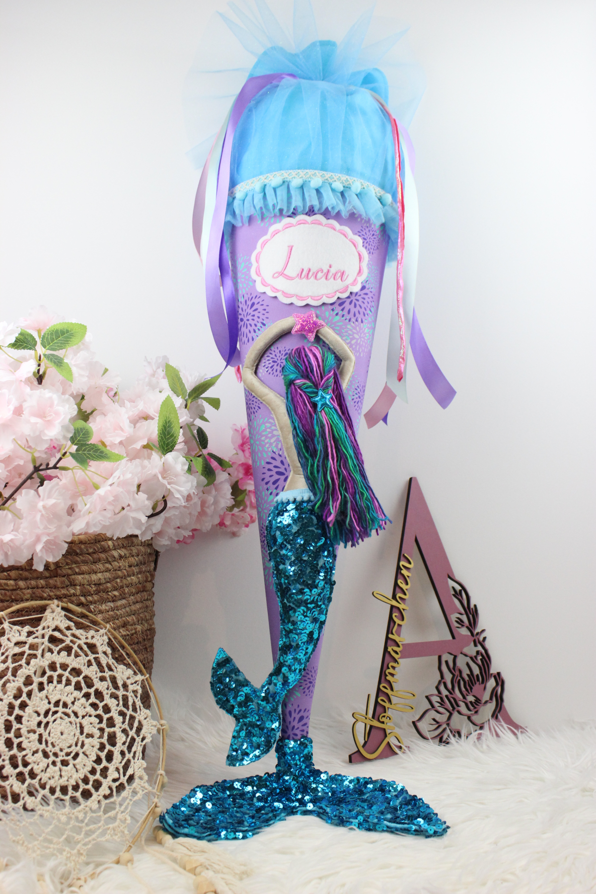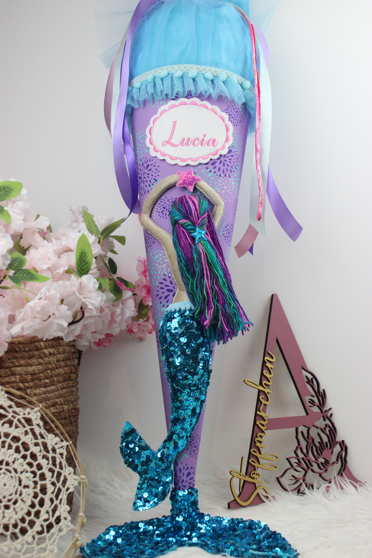3D Schultüte aus Stoff Meerjungfrau Meerworld Flosse Einschulung Mädchen