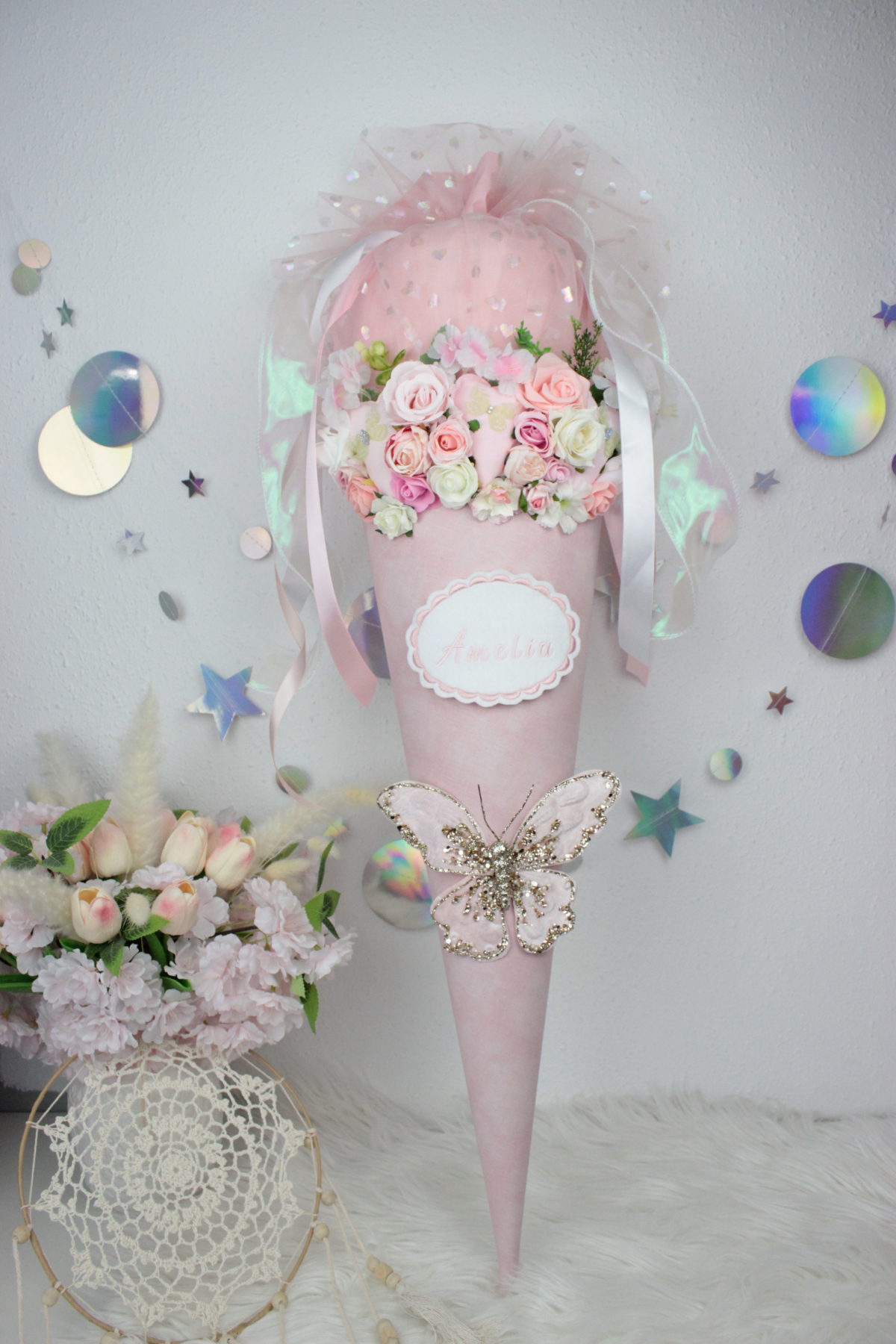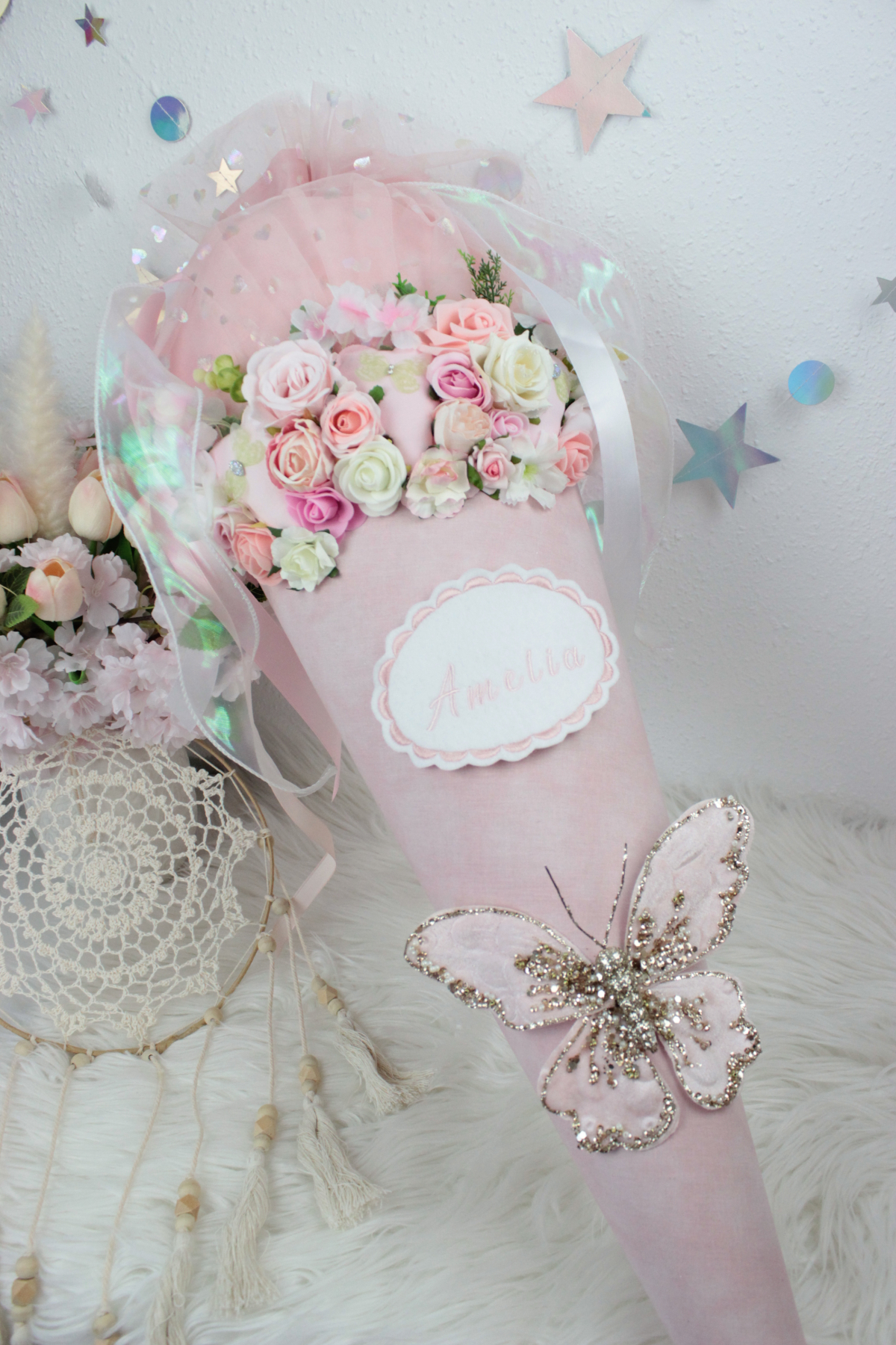 Schultüte aus Stoff 3D-Design Zuckertüte Schmetterling Mädchen Unikat Einschulung 3D-Applikation