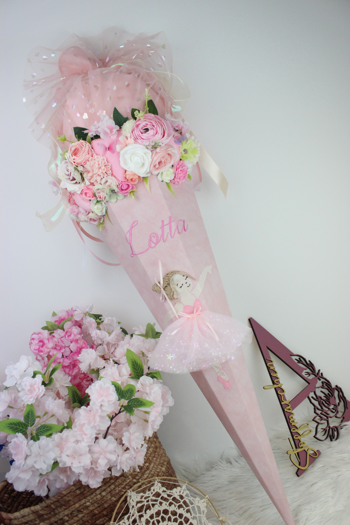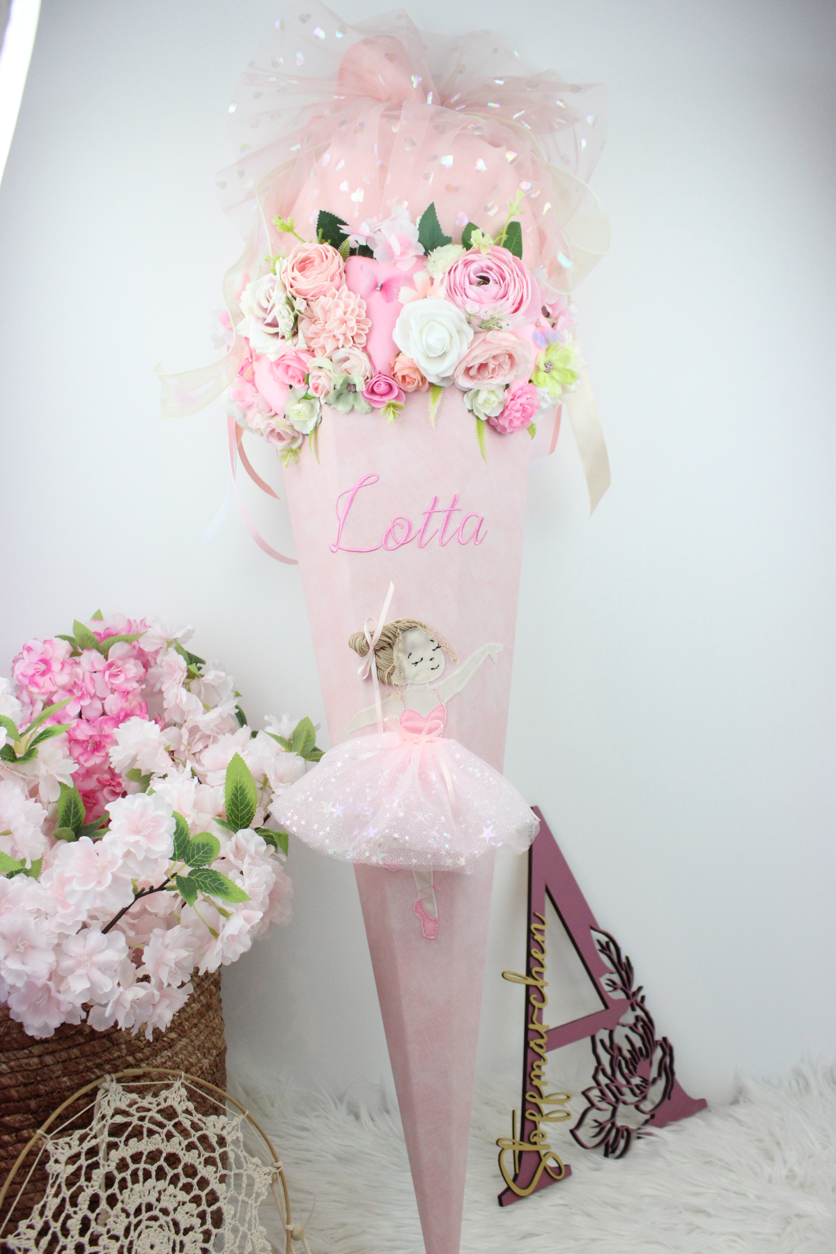 Schultüte Ballerina Ballet Glitzer 3D Mädchen Zuckertüte Blumen Einschulung
