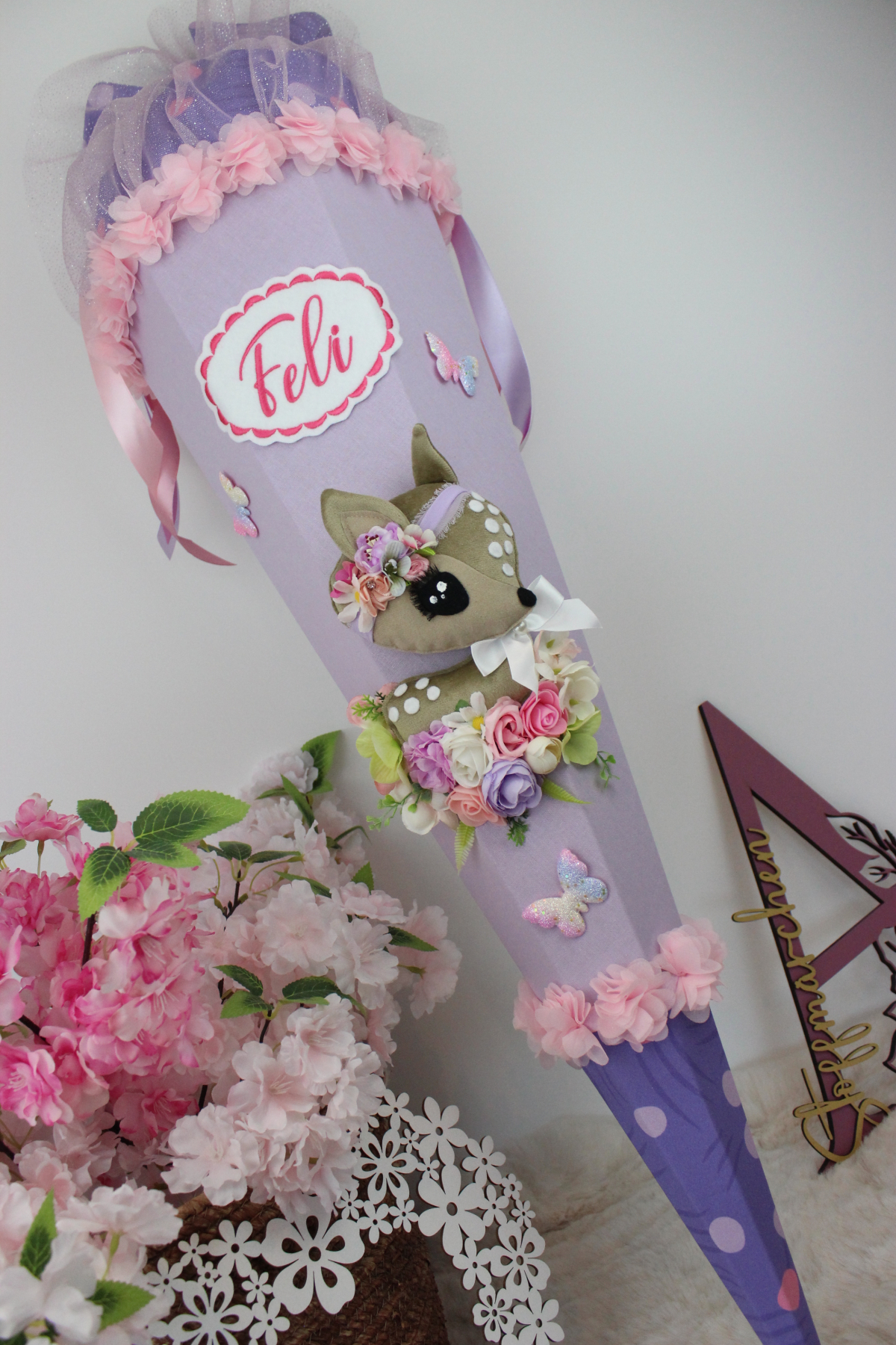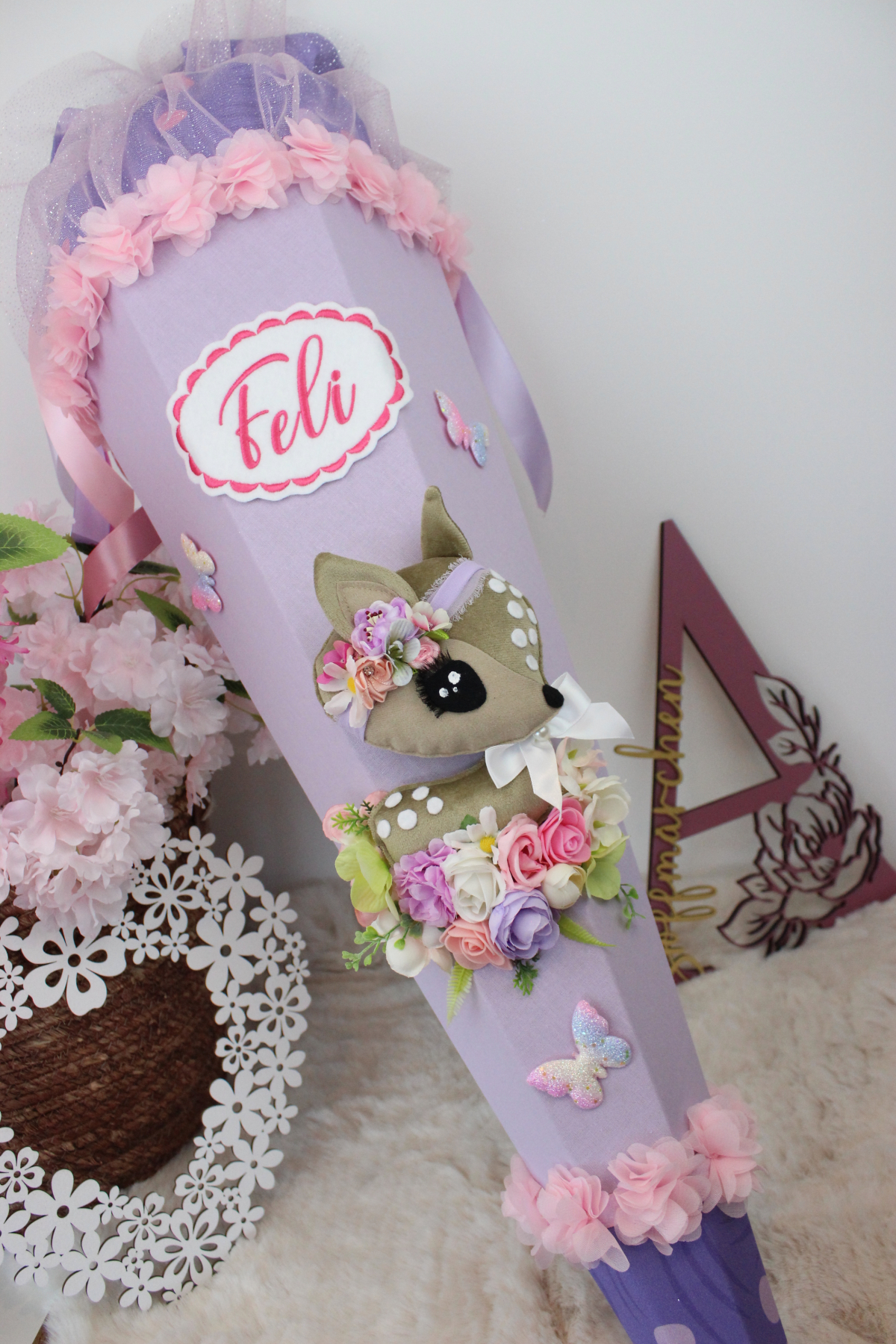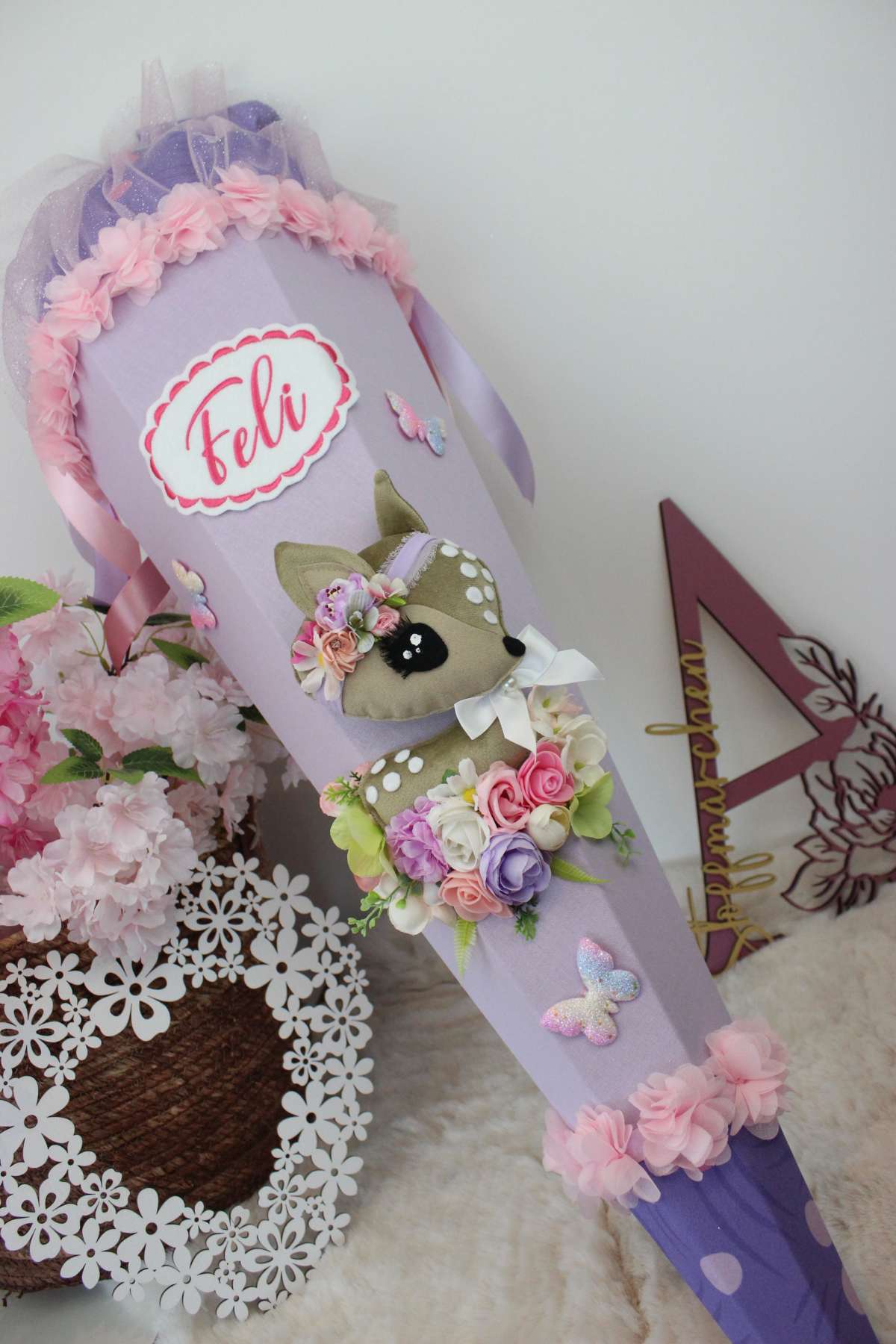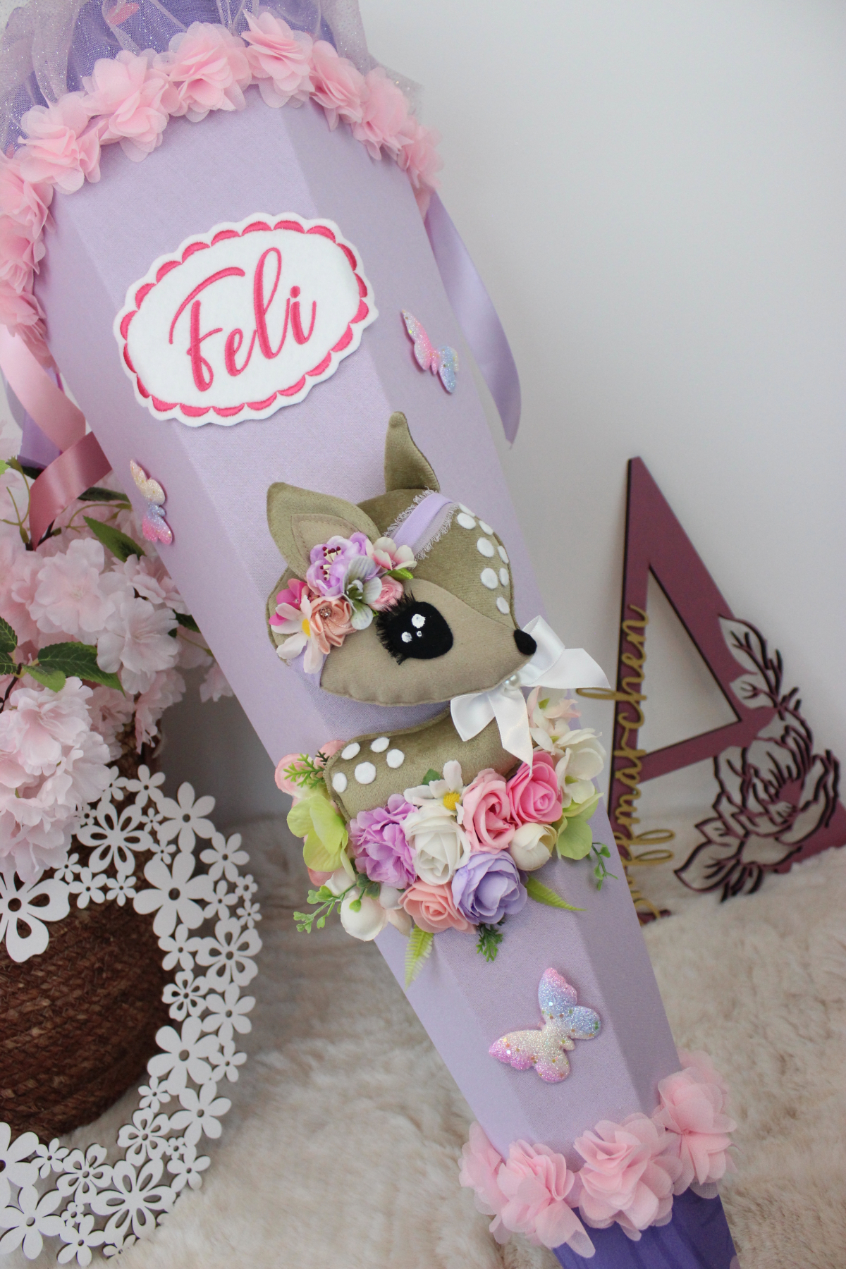 3D-Design-Schultüte aus Stoff Zuckertüte Stoff Rehkitz Reh Unikat Einschulung